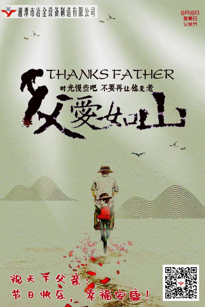 值此一年一度的父親節(jié)來臨之際,湘潭市冶金設(shè)備制造有限公司敬祝天下父親:節(jié)日快樂!幸福安康!