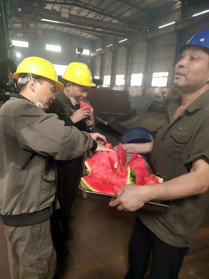 在車間緊張的生產(chǎn)中,行政處工作人員為在高溫下堅(jiān)守崗位的員工送上清涼的“能量補(bǔ)給”,不僅清熱解暑,還承載著公司領(lǐng)導(dǎo)對(duì)員工的感謝與關(guān)愛(ài)。