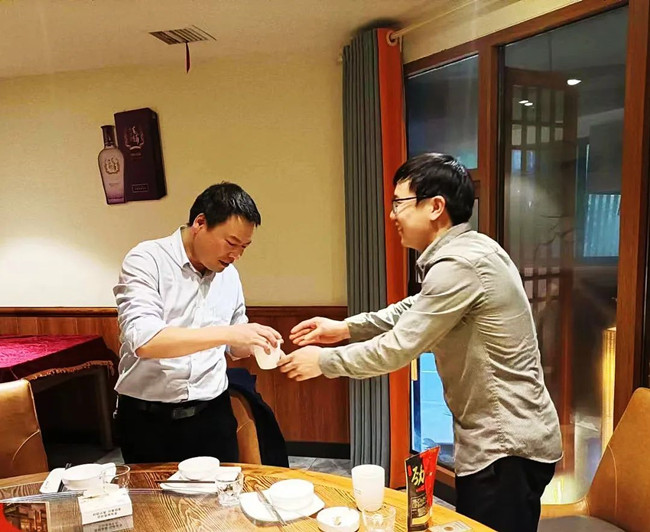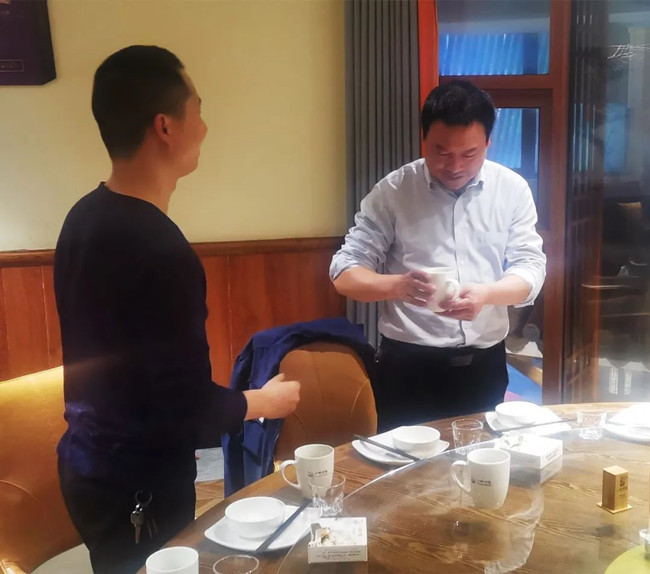 在宴會(huì)上,劉洋、丁永繼兩位徒弟向師傅劉美林總經(jīng)理行拜師禮——首先向師傅深深鞠躬:表示在今后的工作中一定誠(chéng)心、細(xì)心、虛心地向師傅學(xué)習(xí)請(qǐng)教。盡己所能處理和解決工作中的常規(guī)問(wèn)題,遇事多征求師傅意見(jiàn);同時(shí)會(huì)多看些企業(yè)管理方面的書(shū)籍,也希望在座的各位干部多多指教。接著,兩位向師傅敬茶。